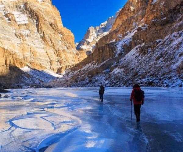 It is advised to reach Leh by air because roads and passes are normally blocked in the winter. It takes most people 2 days to get accustomed to the drop in temperature. You can see the Stok Kangri peak here. After staying in Leh and buying any necessities that you want, starts the long drive to Chilling. Along the drive, you will be able to see the Zanskar merging with the Indus. After reaching Chilling starts the real trek. You cross the sheet of ice and put up tents along the river at night. Your next campsite can be Gyalpo or Tilad Do depending on your speed. Walking on ice is unpredictable so one must be careful about where to stop and pitch tents. The next stop is