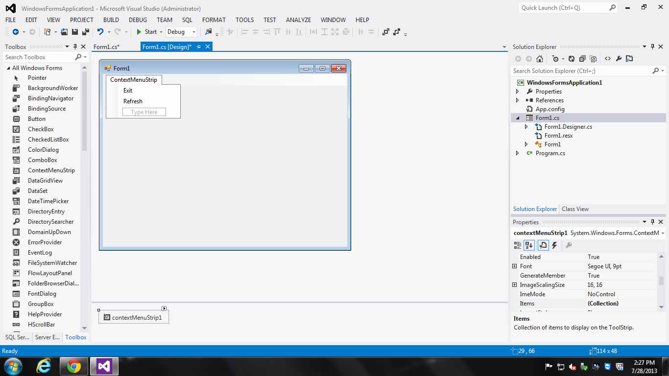 How to create Right Click Menu on C# windows form in Visual Studio 2012