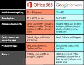 While many similar services are offered by Google for Work and Microsoft Office 365, there can be a significant challenge for CIOs in choosing between the two. This comparison lessens that burden.